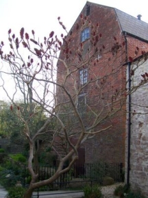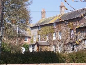 From the mill follow the lane south to the main road. The pub opposite, the Spice Ship, is Hardy's Old Ship. Among the many thousands of minor Englishmen whose lives were affected by [the threat of invasion from Napoleon's armies were] Corporal Tullidge, who sported the crushed arm, and poor old Simon Burden, the dazed veteran who had fought at Minden. Instead of sitting snugly in the settle of the Old Ship, in the village adjoining Overcombe, they were obliged to keep watch on the hill. They made themselves as comfortable as was possible in the circumstances, dwelling in a hut of clods and turf, with a brick chimney for cooking. Here they observed the nightly progress of the moon and stars, grew familiar with the heaving of moles, the dancing of rabbits on the hillocks, the distant hoot of owls, the bark of foxes from woods further inland; but saw not a sign of the enemy. As, night after night, they walked round the two ricks which it was their duty to fire at a signal - one being of furze for a quick flame, the other of turf, for a long, slow radiance - they thought and talked of old times, and drank patriotically from a large wood flagon that was filled every day. (The Trumpet Major)